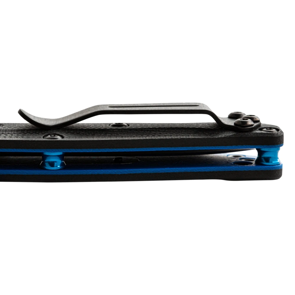 Le manche du couteau est fait de G10, un matériau fort et résistant, connu pour sa durabilité et sa facilité d’entretien. En outre, le manche est disponible en noir pour une apparence moderne. Il y a un clip réversible sur le couteau pour permettre un transport facile et pratique.